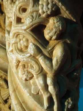 Entre las obras que se exponen, provenientes de la Catedral de Santiago y de otros importantes monumentos situados a lo largo del Camino, como los de Santa Fede de Conques, San Saturnino de Toulouse o Santiago di Altopascio, destaca el bajo relieve Mujer con racimo de uvas (de la Catedral de Santiago).