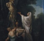 El núcleo central de la exposición es Francisco de Goya, del que se incluyen cinco obras, entre las que se encuentran dos pequeños lienzos muy citados pero poco vistos (y que, además, fueron atribuidos al pintor en el siglo pasado por el comisario de esta muestra, José Milicua): Sacrificio a Vesta (1771) y Sacrificio a Pan (1771), que revelan el interés de un joven artista por los temas mitológicos, a raíz del viaje a Roma que realizara en 1770.