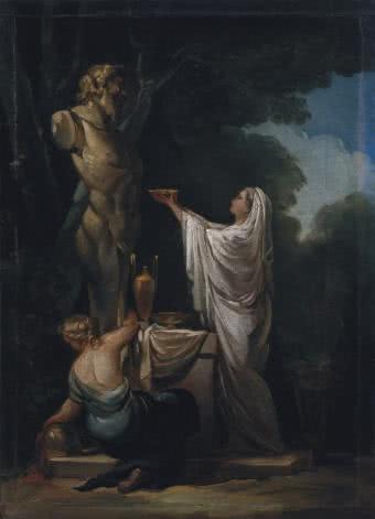 El núcleo central de la exposición es Francisco de Goya, del que se incluyen cinco obras, entre las que se encuentran dos pequeños lienzos muy citados pero poco vistos (y que, además, fueron atribuidos al pintor en el siglo pasado por el comisario de esta muestra, José Milicua): Sacrificio a Vesta (1771) y Sacrificio a Pan (1771), que revelan el interés de un joven artista por los temas mitológicos, a raíz del viaje a Roma que realizara en 1770.