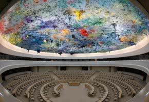 Realizada durante 2007 y 2008, esta obra culminó en un impresionante estallido de formas y colores de una belleza cautivadora que remite tanto a los orígenes del mundo como al fondo del mar. Desde el primer momento, la Sala de los Derechos Humanos y de la Alianza de Civilizaciones se ha convertido en una referencia artística y arquitectónica, así como en un reflejo del valor del multilateralismo con la visualización de distintos colores desde diferentes ángulos.