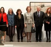 A su llegada al MNCARS, la Reina fue recibida por la vicepresidenta segunda del Gobierno y ministra de Economía y Hacienda, Elena Salgado, la ministra de Cultura, Ángeles González-Sinde, el ministro de Educación, Ángel Gabilondo, la presidenta de la Comunidad de Madrid, Esperanza Aguirre, el ex presidente del Gobierno Felipe González, el presidente del Real Patronato del Museo, Guillermo de la Dehesa, y el director del Museo, Manuel Borja-Villel.