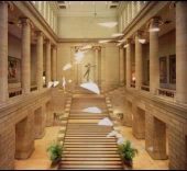Diseñados para ser casi invisibles para los transeúntes –justo por debajo de la eterna escalera que subiera Rocky Balboa–, los nuevos espacios subterráneos suponen un verdadero reto para este arquitecto conocido especialmente por sus llamativas estructuras curvas para exteriores, como la realizada en titanio para el Museo Guggenheim Bilbao en España o la de acero curvado en el Concert Hall de Walt Disney en Los Ángeles.