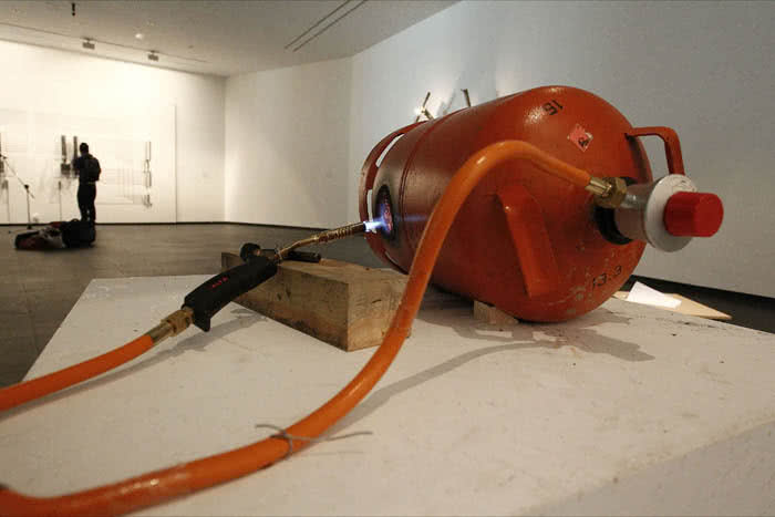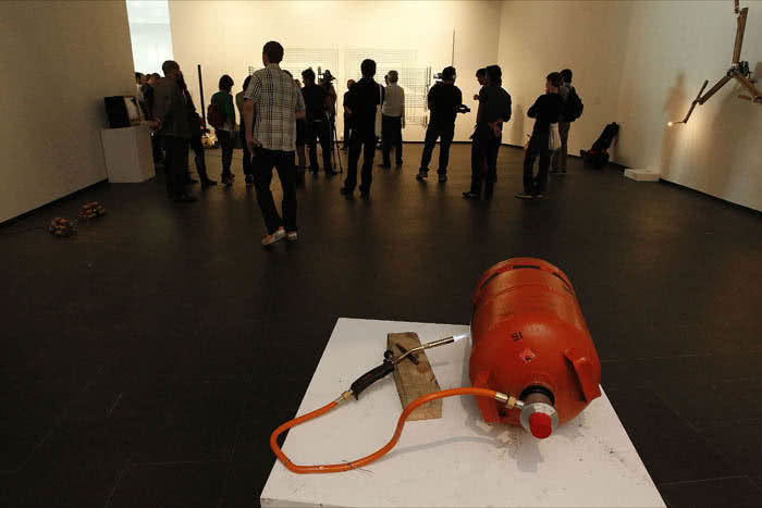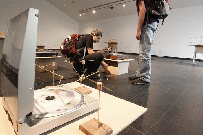 Espacio imaginario Estación experimental se fija en un espacio imaginario. No se detiene en un análisis minucioso del conjunto de la ciencia. Huye de identificar ciencia con sofisticación tecnológica: casi todo lo presente en la exposición raya el bricolaje doméstico. Desplaza su atención hacia lo inverosímil o, como mínimo, lo improbable. Muestra cómo el arte y la ciencia imposible se acercan y se entrecruzan en ese espacio intersticial de lo quimérico, cómo los cruces de las ficciones teóricas con las ficciones estéticas generan un cortocircuito de consecuencias imprevisibles. Los trabajos incluidos en la exposición desafían las expectativas del espectador al cuestionar las lógicas que el sentido común aplica a nociones como gasto, esfuerzo o riesgo tanto en el arte como en la ciencia. Proponen soluciones complejísimas para problemas inexistentes. Se muestran situaciones en las que lo absurdo entronca con lo cotidiano, amplificando las percepciones de la realidad hasta hacerla grotesca. Los juegos de ida y vuelta, las confusiones de uso o material y, en general, la insistencia en afirmaciones que sabemos, a priori, que probablemente no son ciertas constituyen la materia prima de Estación experimental. |