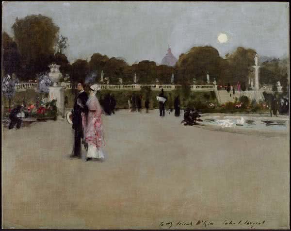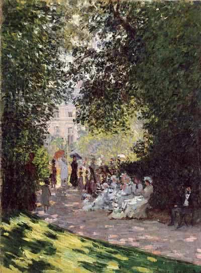 La segunda polaridad se establece entre el parque público y el jardín privado. Monet y Pissarro, Berthe Morisot y John Singer Sargent descubrieron en los parques públicos de París y otras ciudades los escenarios de una intensa vida social. Pero en la pintura de Manet, Monet o Morisot, el jardín puede ser también el refugio último de la vida privada: la conversación, el almuerzo, la lectura o el reposo.