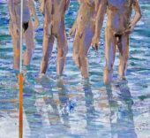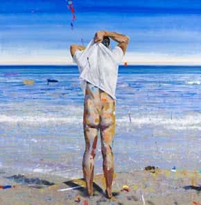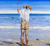 En Sin tesis llaman la atención de forma especial otros cuadros en los que el lugar representado por el artista sirve de soporte a una situación o actividad que permite ver a una nueva luz el propio lugar representado. «Me refiero, ante todo, a Judit. Ese cuadro nos muestra un espacio que representa la galería Marlborough, donde el propio cuadro se presenta al público, y en el que están «meta-representados» dos personajes, que, por otro lado tienen su cuadro correspondiente en la exposición. El personaje que da la espalda al espectador y mira hacia el mar es Esopo, que está representado en Esopo. La mujer desnuda que se nos muestra de frente emergiendo de un fondo tenebroso y bebiendo el líquido de una copa, es la Judit que da nombre a la entera composición».