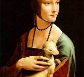 La obra, adquirida por el príncipe Adam Jerzy Czartoryski en 1800 –seguramente en Italia– muestra a Cecilia Gallerani, joven de 17 años amante de Ludovico Sforza «El Moro». Da Vinci retrató a Gallerani con peinado y vestimenta alla spagnola, portando en brazos un pequeño armiño, emblema que alude a Sforza, conocido también con el sobrenombre de «ermellino» por haber recibido en 1488 la Orden del Armiño que le concedió Fernando I de Aragón, Rey de Nápoles.