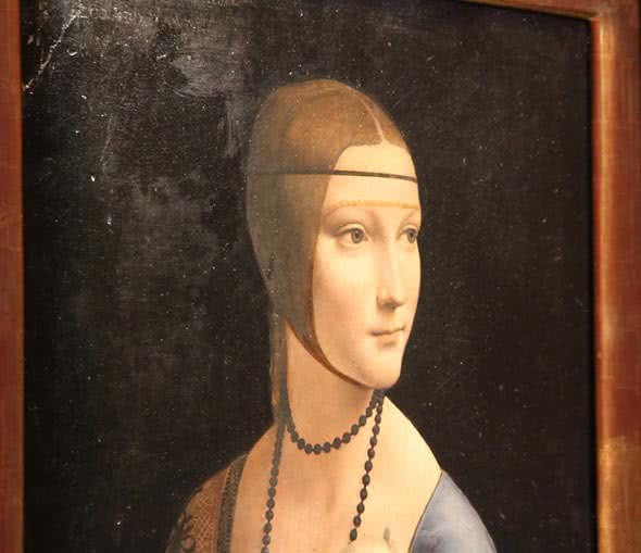 Ya en la sala, todos los expertos coinciden en destacar su espectacular exposición: una estancia blindada, acristalada, hermética, climatizada en su interior, y atentamente iluminada y envuelta por el juego perspectívico de las paredes en las que cuelga al exterior. Es La dama del armiño –también conocida como Retrato alegórico de Cecilia Gallerani–, una obra pintada por Leonardo da Vinci hacia 1490 que pasa por ser la pieza estrella de la exposición Polonia. Tesoros y Colecciones Artísticas (organizada por Patrimonio Nacional, Acción Cultural Española –ACE– y la Fundación Banco Santander) y cuya presencia en la capital española ha causado una gran expectación. Los Reyes de España inauguran hoy esta muestra en el Palacio Real.