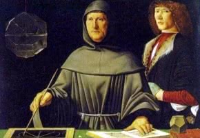 En 1496, y tras una invitación del duque Ludovico Sforza, Luca Pacioli se trasladó a Milán para enseñar matemáticas. Por esta misma época, Leonardo da Vinci se encontraba también en la capital lombarda, al servicio del duque, para quien realizaba una estatua ecuestre. Pacioli entabló muy pronto con Leonardo una gran amistad, que quedó reflejada en los elogiosos comentarios que le dedicó en algunas de sus obras, y en el cariñoso tratamiento de “querido Leonardo”. Así describe Pacioli a su amigo en De Divina Proportione: “el más excelente pintor de perspectiva, arquitecto, músico, y un hombre que conoce todas las virtudes”.
