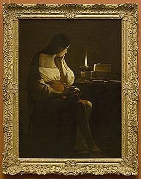 La Tour, redescubierto en el siglo XX por otra de sus grandes obras como es El Tramposo (fechada hacia 1635 y conservada en el Museo del Louvre), terminó por escapar de aquellos estilos a los que se acercó para aprender a mirar desde “otro” lugar. Así, su técnica de superficies pulidas y empaques volumétricos, conjuga un extraño desequilibrio, fruto seguramente de una tensión que, como ya ocurría en Piero Della Francesca (1420-1492), se debate entre el silencio del color plano y el silencio de la perfecta geometría. Además, son sus temas, semilla para eso que el historiador del arte Michel Fried comentaba al mirar ciertas obras del inmediato siglo XVIII, esto es, anuncios de un “otro” lugar del que mira y que termina por descubrir esas “otras” cosas que suceden no ya dentro del cuadro, sino dentro de nosotros mismos. Así nos lo dice esta Magdalena o su Santo Tomás (hacia 1625-30) que, además de ser objetos absortos en el espacio, tematizan una “otra” mirada de la pintura.