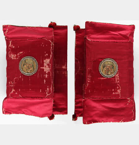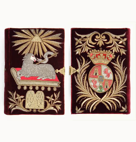 Una selección de los fondos de la Real Biblioteca, Real Monasterio de San Lorenzo de El Escorial, Monasterio de Santa María la Real de Las Huelgas de Burgos, Monasterio de las Descalzas Reales y el Real Monasterio de la Encarnación integran esta colección. Completan la muestra otras obras de arte como armas, alfombras y relojes que ayudan a entender la encuadernación como elemento fundamental de la cultura de corte.