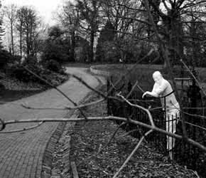 Así, el artista español plantea con su instalación esa necesidad de mirar y de ir más allá de lo que se mira y coloca al espectador, al paseante que camina por el parque, en el lugar de Thomas en la película al situar siete estatuas de resina de poliéster cubiertas de polvo de mármol o bronce pintado de blanco y tamaño natural confundiéndose con la vegetación. De esta forma, el paseo se convierte en un proceso de descubrimiento de aquello escondido que está más allá de una primera mirada. Una estrategia que no se aleja de la obra anterior de Roig, en la que ha investigado sobre todo el hecho de mirar y reconocer un mundo fragmentado en el que es necesaria también la visión interior, una visión que sólo se puede alcanzar cuando se provoca la ceguera.
