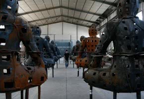 Las efigies de budas-guardianes herrumbrosos buscan un efecto plástico, que simula una falta de gravedad. "Las esculturas están muy desnudas. He intentado dar la sensación de que las piezas, que en realidad pesan bastante, más de una tonelada cada una, aparentemente sean ligeras", explica el autor.