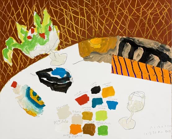 Pinturas sobre lienzo y madera de grandes dimensiones, alternadas con formatos más pequeños sobre papel. Obras que exploran los límites entre el dibujo y la pintura, algunas muy luminosas y coloristas, otras buscando el claroscuro de los grises.