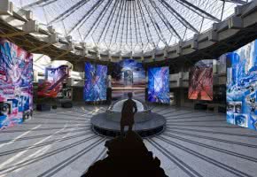 La arquitectura de los cuadros dialoga con la del edificio, edificaciones circulares dentro de un edificio circular. Y las miradas están por todas partes, ocupan todo el espacio, las de los protagonistas de las pinturas, la que se intuye analítica y organizadora del caminante, los cruces visuales de cuadro a cuadro, las explícitas de los rostros fotografiados, y, sobre todo, las de los espectadores, miradas dinámicas desde distintos planos de observación.
