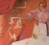Picasso heredó y transformó otro de los temas favoritos de Degas –las mujeres bañándose y peinándose–, al que volvió en repetidas ocasiones a lo largo de un período de más de cincuenta años. La exposición revela que ambos artistas exploraban este íntimo mundo femenino en todos los medios y formatos, que van del más diminuto al más monumental. El escultural cuadro de Picasso Mujer peinándose (1906, Museum of Modern Art, Nueva York) se presenta al lado de dos óleos de Degas: el radiante El Peinado (c. 1896, National Gallery, Londres), de tonos rojos y rosados, y la inmensa y aparentemente inacabada Mujer desnuda secándose (1884-1886, Brooklyn Museum, Nueva York).