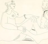 A finales de la década de 1870, Degas creó una serie de monotipos que representan a prostitutas y sus clientes en los burdeles. Picasso sentía una admiración especial por estos grabados y adquirió nueve de ellos para su propia colección. Hacia el final de su vida dialogó con éstos directamente en una serie de aguafuertes humorísticos y patéticos, en los que el propio Degas aparece personificado como un cliente cauteloso e inhibido, pero fascinado. La exposición concluye con esta serie y con el retrato de Degas pintado por Picasso en 1968 (colección privada) como homenaje al gran impresionista.