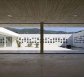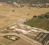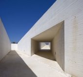 El edificio premiado es una construcción semienterrada, con lo que se evita el impacto visual sobre el conjunto arqueológico y su entorno protegido, de 7.300 metros cuadrados de superficie construida, muros de hormigón blanco visto, encofrado de tabla de madera, cubiertas de acero cortén y patios de piedra caliza.