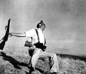 Robert Capa –su nombre real era Endre Enrö Friedmann– (Hungría, 1913 – Indochina, 1954) realizó en la Guerra Civil española algunas de las imágenes más famosas del conflicto, como Muerte de un miliciano, instantánea del momento en el que un soldado republicano cae herido de muerte en Cerro Muriano (Córdoba), que quizás sea una de las fotografías de guerra más famosas de la historia.