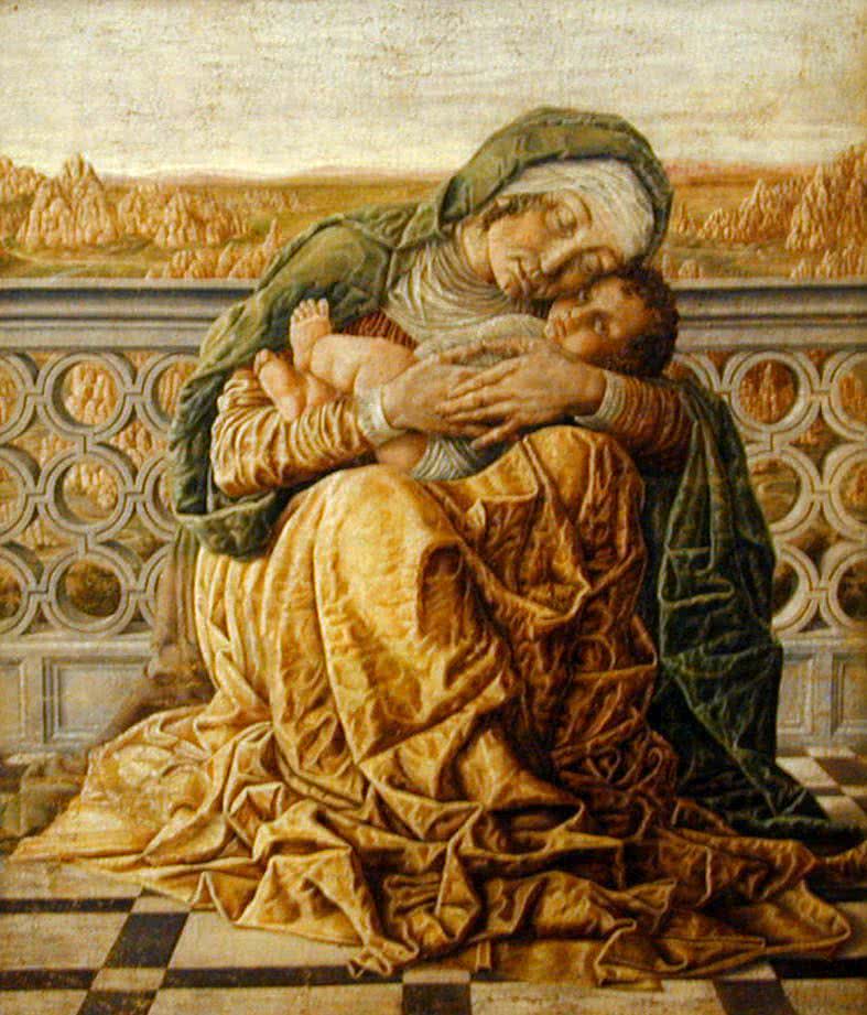Asimismo, está presente Mantegna, destacado artista de la escuela de Padua y con gran influencia en las posteriores de Venecia, Lombardía y Emilia, con la pieza Virgen y el niño.