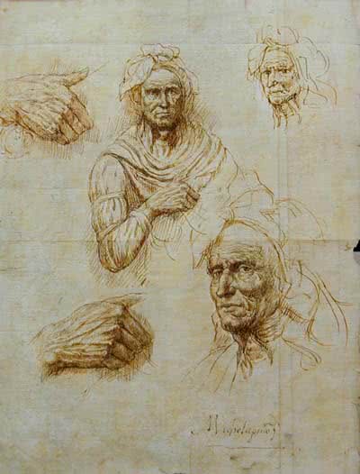 En escultura destaca el bronce Atropos, del polifacético Miguel Ángel, para quien este material no era ajeno, pero en el que tampoco se prodigó. De hecho, ésta es su única pieza en bronce conocida en la actualidad, de entre las varias documentadas por G. Vasari en el siglo XVI, y cuyos dibujos preparatorios acompañan a la escultura en la exposición.