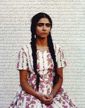 Shirin Neshat (1957, Quzvin, Irán) vive y trabaja en EE.UU. desde 1974. Ha realizado exposiciones individuales en centros de arte y museos como el Museo de Arte Moderno de México DF, el Contemporary Arts Museum de Houston, el Walker Art Center de Minneapolis, el Espoo Museum of Modern Art (Finlandia), el Castello di Rivoli en Turín, el Dallas Museum of Art, el Wexner Center de Columbia, el Art Institute of Chicago, la Serpentine Gallery de Londres, el MUSAC de León o el Hamburger Bahnhof de Berlín. Neshat también ha participado en la Documenta XI (2002), la Bienal de Whitney (2000) y en 1999 ganó la XLVIII Bienal de Venecia. En el 2009 fue galardonada con el León de Plata de la Mostra de Venecia por su película Women without Men (Mujeres sin hombres). También ha recibido reconocimientos como el Hiroshima Freedom Prize y el Lillian Gish Prize. En 2008, su exposición individual Mujeres sin hombres inauguró el ARoS Kunstmuseum en Dinamarca, viajó a la Galería Nacional de Arte Contemporáneo en Atenas y abrió el Kulturhuset Stockholm en otoño de ese mismo año. |