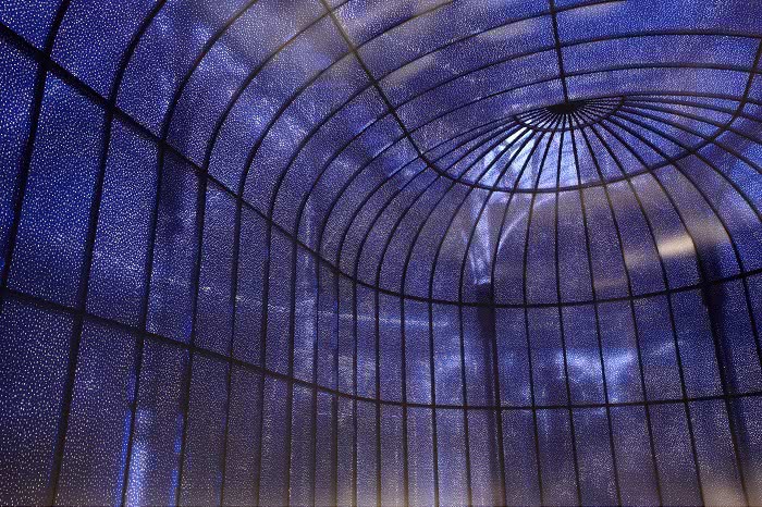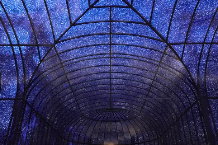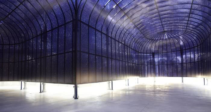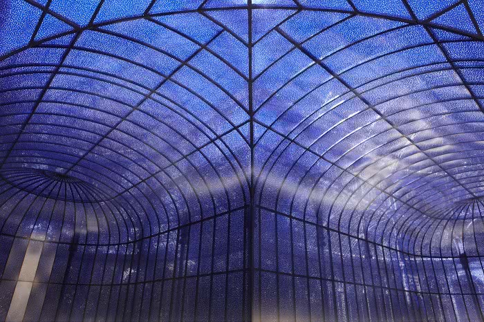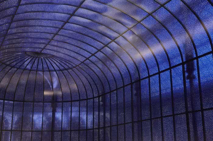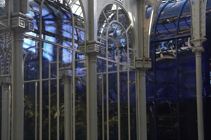 Es decir, el Palacio de Cristal, que en su origen fue un invernadero para plantas tropicales, alberga en su interior una réplica de sí mismo que funciona como su segunda piel. Una piel porosa y efímera que a la vez que le protege del exterior (del afuera), lo refleja y recrea, y que posibilita que el edificio se transforme en un espacio de reflexión sobre la fragilidad del lenguaje y la necesidad de comunicar y compartir.