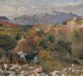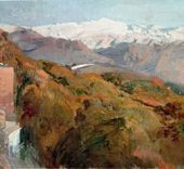 1902, Sorolla visita Granada Sorolla estuvo en Granada en cuatro ocasiones: 1902, 1909, 1910 y 1917. La primera fue una visita fugaz, pero dejó en él una profunda huella y el deseo de regresar para pintarla, lo que haría en unas 50 obras, con la Alhambra y Sierra Nevada como principales protagonistas; el Museo Sorolla de Madrid conserva 24 de ellas. Desde su primera visita, el pintor quedó deslumbrado por el paisaje y el patrimonio monumental de la ciudad. Sierra Nevada, las vistas de la ciudad o los patios y torres de la Alhambra son algunos de los motivos que cautivaron al pintor. Los paisajes que realiza en Granada son claves dentro de su producción. En ellos explora el género sin figuras, desplegando todos los recursos adquiridos a lo largo de su carrera con una pincelada expresiva y certera. La propia sede del Museo Sorolla da testimonio de la impresión profunda que la ciudad andaluza dejó en el pintor: uno de los jardines que diseñó para rodear su casa se inspira directamente en el Generalife, y el propio Sorolla compró en Granada los arrayanes para sus setos, algunos de los cuales se conservan todavía. |