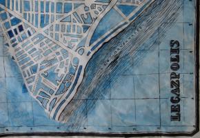 Este recorrido virtual se inaugura con una instalación titulada El Strip de Delicias, como si del Strip de las Vegas se tratase, formada por una serie de carteles luminosos que hacen referencia a lugares lejanos. Carteles de locales comerciales que son una forma de visibilidad de las poblaciones inmigrantes del barrio.