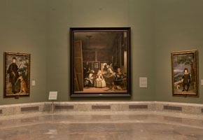 “La Noche en Blanco” en el Prado ofrecerá, a quienes no hayan tenido ocasión de visitar sus salas recientemente, la oportunidad de contemplar la colección de Velázquez con una nueva mirada ya que, además de los cambios introducidos en la gran sala basilical, que continúa siendo presidida por Las meninas pero que se dedica ahora en exclusiva a “El retrato real”, podrá contemplar la nueva presentación de Las hilanderas, situadas en una sala contigua con un montaje especial que restituye la obra a su tamaño original (ocultando el añadido posterior que desvirtuaba la composición dada a esta pintura por el propio Velázquez), así como la nueva instalación de La rendición de Breda (o Las lanzas) y otros cuadros del artista dedicados al tema de “La guerra” en el corazón de la gran galería central del Museo.