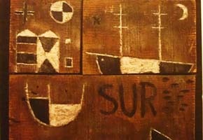 Torres-García dejó ya todo dicho con el famoso dibujo con que ilustró su artículo La Escuela del Sur (1935). Éste funciona como auténtico manifiesto de la susodicha escuela, pues muestra el mapa de Latinoamérica invertido, de modo que “la punta de América, desde ahora, prolongándose, señala insistentemente el Sur, nuestro norte”. De forma tan temprana, la vanguardia latinoamericana –que existe de forma autónoma y no como prolongación de la europea–, está cuestionando las coordenadas geopolíticas por las cuales ordenamos el mundo, o mejor, por las cuales Occidente ordena el mundo a su conveniencia. Con ello, se están sentando las bases de las teorías postcolonialistas que en los años 50 llegarán a cuestionar el propio concepto de identidad nacional.