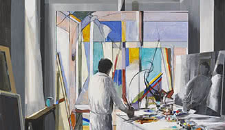 al estudio, los lienzos de Albacete reflexionan mediante un metadiscurso sobre el trabajo del artista.